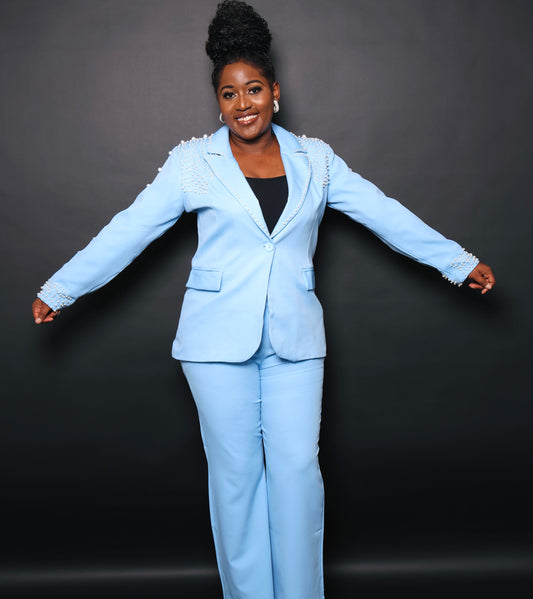 Elegant beading pant suit Set (skyblue)