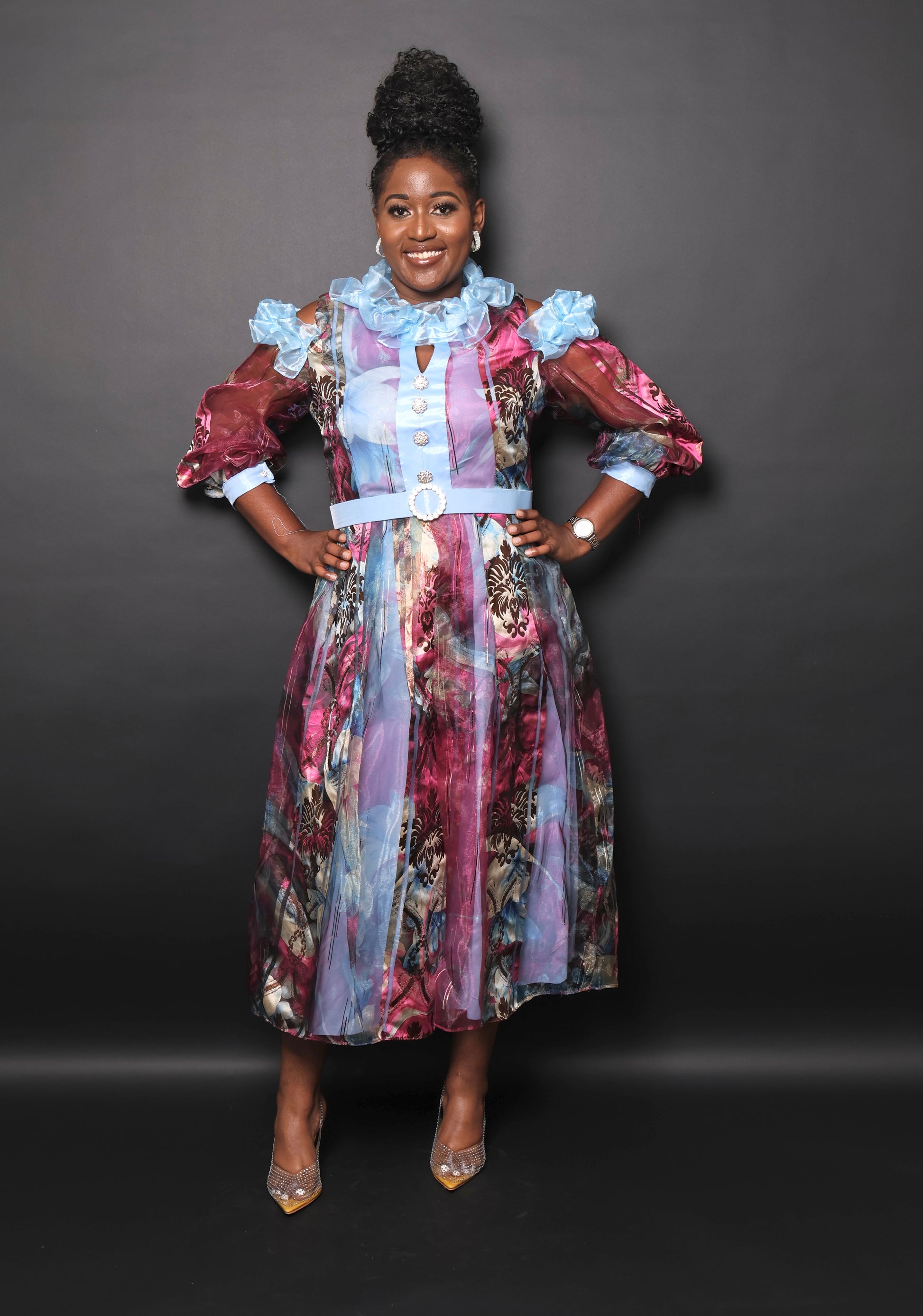 This blue and purple midi dress is a statement of bold elegance, adorned with intricate appliqués that create a striking contrast and modesty. This elegant Midi dress is perfect for all occasions such as church, work, dinner night, wedding and more.